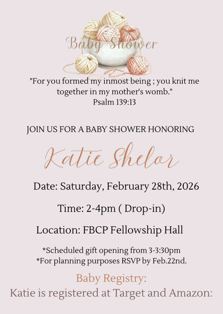 - 3:30pm RECREATION MINISTRY—help set the vision for recreation at FBCP!