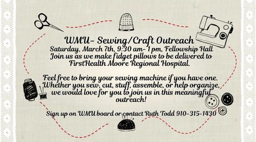 Deacons of the week are David Jordan (910) 315-5023 and Joe Smith (910) 315-3188.