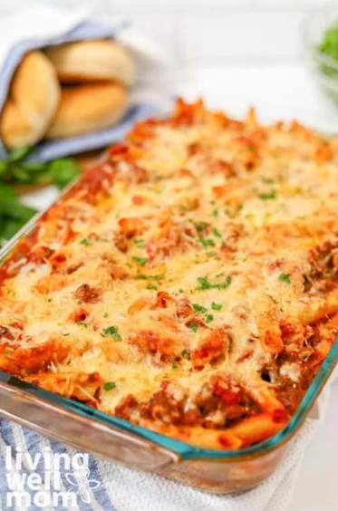 - All Plates: Pasta with meat sauce, Mixed green salad, Garlic bread
