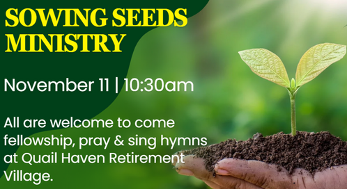 There will be a baptism service on Sunday, November 9. Please see Pastor Jonathan if you are interested in taking the next step in your walk with Christ.