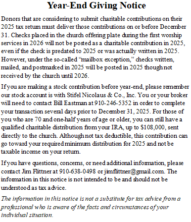 - Deacons of the week are Dan Thomson (518) 368-6437 and Joe Smith (910) 315-3188