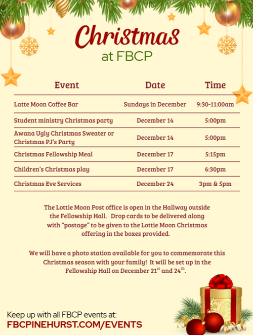 - We are in need of volunteers in the Sound Booth. NO EXPERIENCE NECESSARY! All ages welcome! Please see Pastor Josh Costello or email josh.costello@fbcpinehurst.com.
